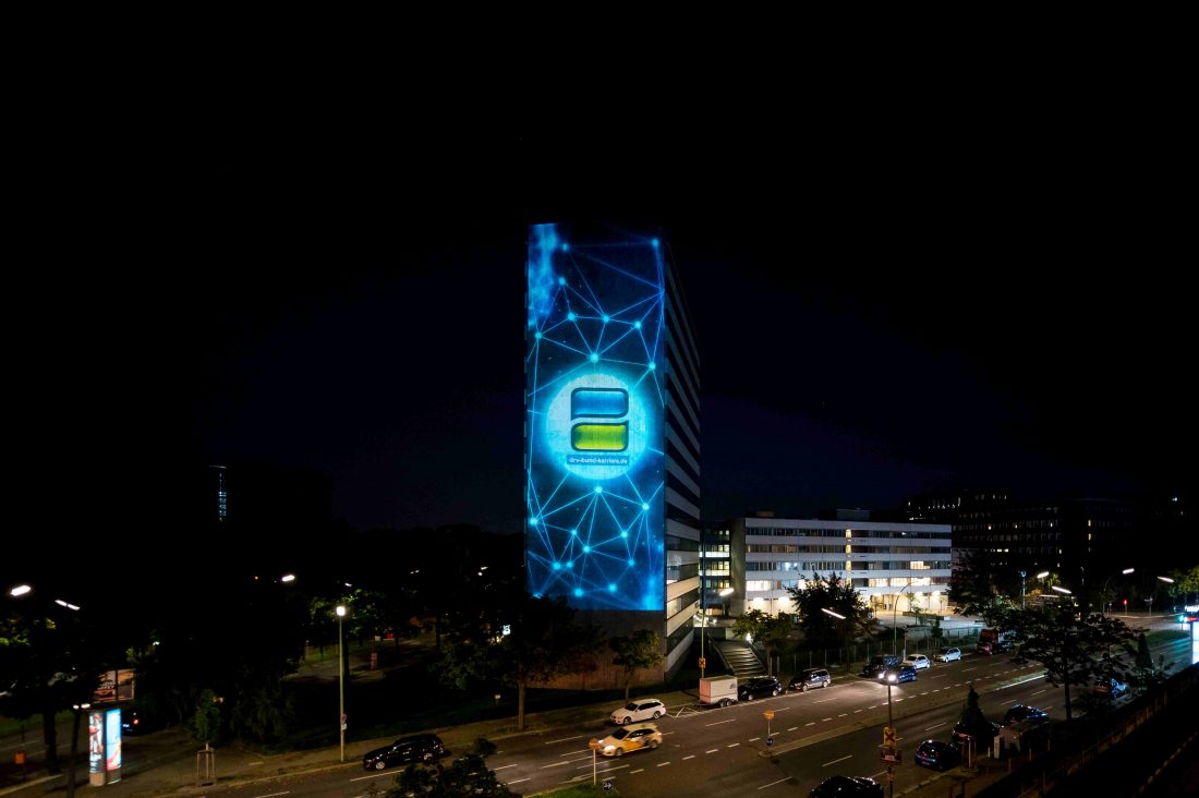 Zander & Partner arbeitet seit 2018 für den Deutsche Rentenversicherung Bund, einen der größten Berliner Arbeitgeber, und realisierte parallel zu Kampagnen wie #mehrdahinter oder #einlebenlang aussagekräftige 3D Mappings auf der Fassade des Berliner Standortes. Auch um sich bei den mehr als 25.000 Mitarbeitenden für ihre geleistete Arbeit zu bedanken.
