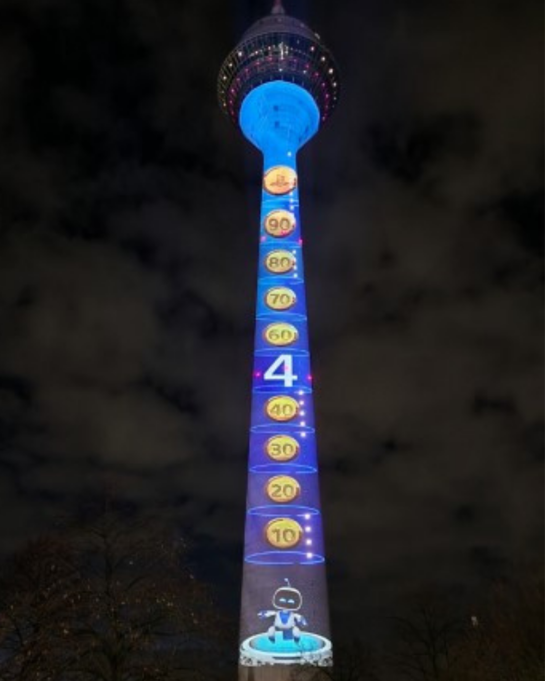 Am Fuße des Rheinturms hatten die Besucher*innen die Gelegenheit, ihre Fähigkeiten in einem interaktiven Spiel unter Beweis zu stellen: Ziel war es, „Astro Bot“ dabei zu helfen, die Spitze des Turms zu erreichen. Mit jeder gesammelten Punktzahl stieg eine virtuelle Kugel die Skala des Turms empor. Als besonderes Highlight wurden die Namen der Teilnehmerinnen in die Projektion integriert, was für einen einzigartigen und persönlichen Wow-Effekt sorgte.